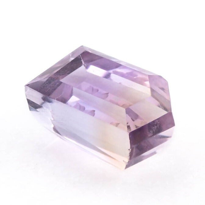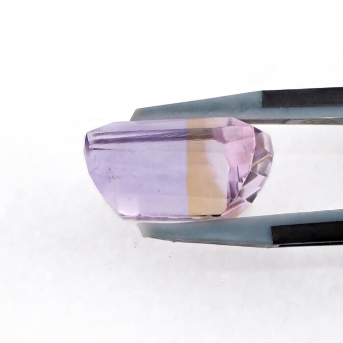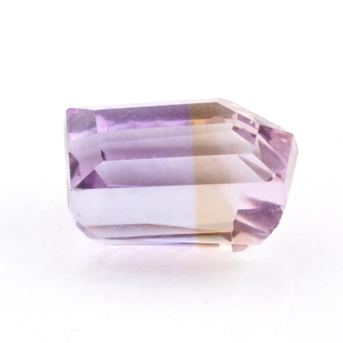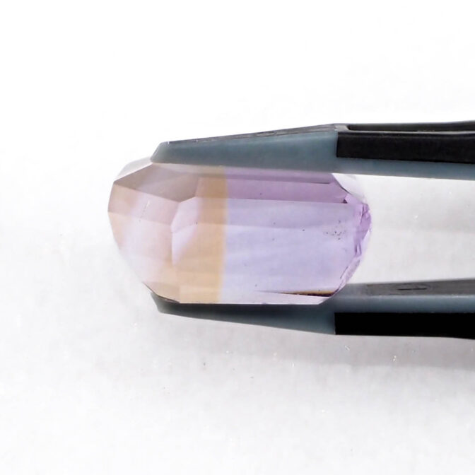 シトリンのイエローとアメジストのパープルがはっきりと分かれ、2色のハーモニーが楽しめるアメトリン。その名の通りアメジストとシトリンが一つの石の中で共生しているバイカラーの石です。