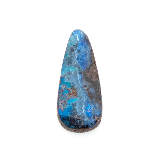 母岩の中にオパール層が入り込み、形成されるボルダーオパール。母岩の隙間からほとばしる遊色の輝きと、模様のように入り組んだ鉱物たちが織りなす美しさは、芸術品の域に達します。主にオーストラリアで産出しますが、残念ながら年々採掘量が減っており、価格が急騰している石の一つでもあります。