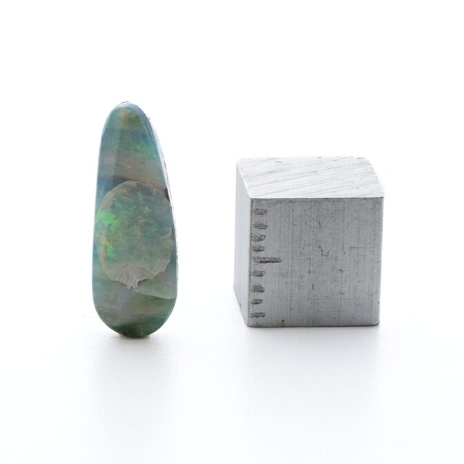 小さめとはいえど、鑑賞するには十分な大きさがあり、ふんわりと内側から発光しているような不思議な質感を楽しめます。深く、暗い地球の底から、きらめく閃光のように地表まで押し出されてきた美しいオパールを捕まえてルースに仕立てた一点もの。ペンダントヘッドに仕立ててればゆらゆらと揺れる大地の輝きを楽しんで頂けます。