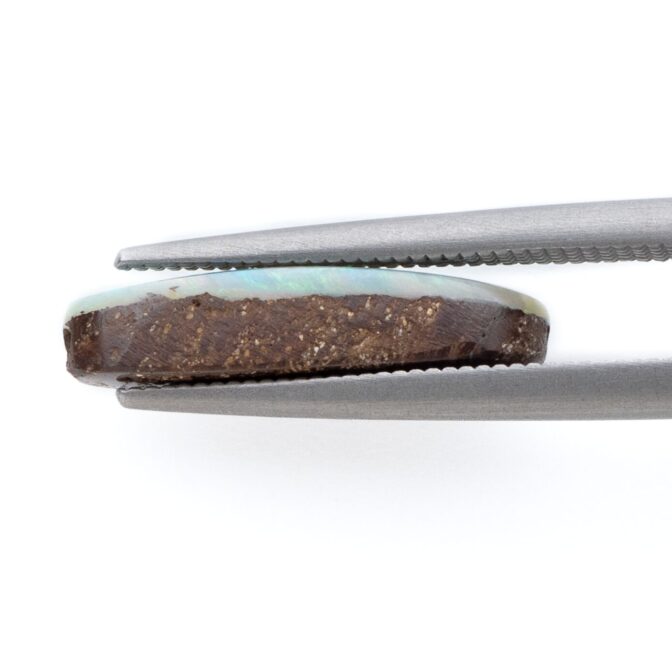 母岩の中にオパール層が入り込み、形成されるボルダーオパール。母岩の隙間からほとばしる遊色の輝きと、模様のように入り組んだ鉱物たちが織りなす美しさは、芸術品の域に達します。主にオーストラリアで産出しますが、残念ながら年々採掘量が減っており、価格が急騰している石の一つでもあります。