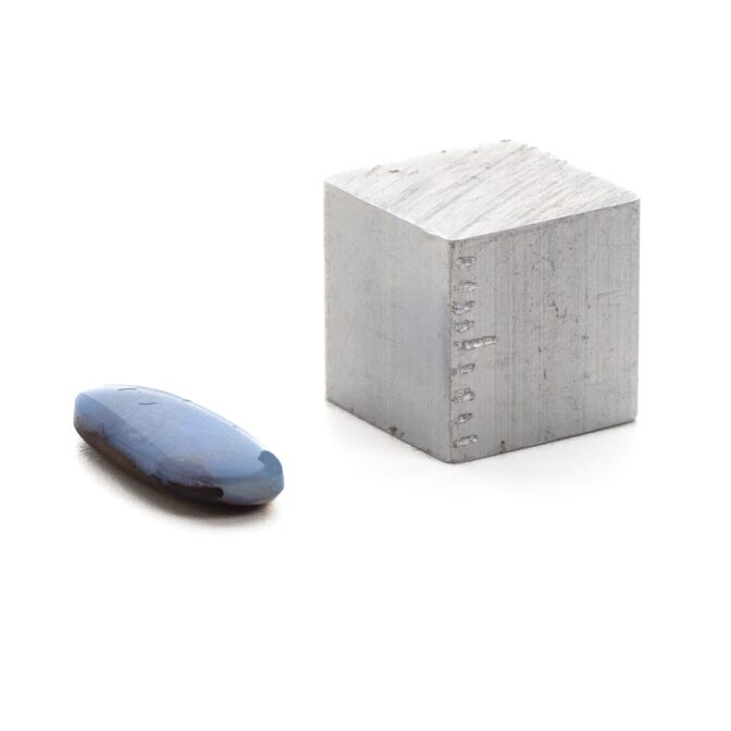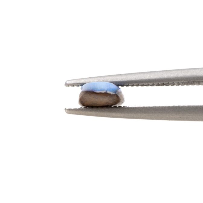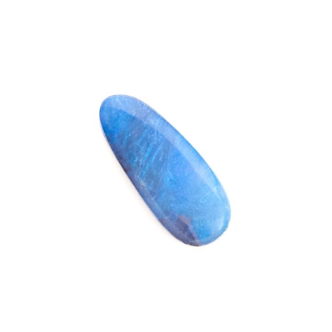 このページでご紹介しているボルダーオパールは、大変状態がよく、質も良いデッドストック。香港に買い付けに行った際、オーナーすら存在を忘れていたという逸話があります。引退するオパール専門店からまとめて引き取ったものの、数が多すぎてジュエリーにするにも手が届かず、持て余していたとのこと。なるほど、ジュエリー用だったからこその質の良さなのですね。上質なボルダーオパールは、カラット数を保つため、どうしても大粒になりがち。ですが今回のロットはやや小さめに形よくカットされ、ジュエリーにぴったりサイズなのが嬉しいところ。漆黒に艶めく母岩の間からチカチカと星のように瞬く遊色は鮮やかな紺色。鮮烈な輝きが黒い母岩から湧き出す様子はまるで夜空を走り抜ける雷鳴のよう。シックなのに華やかという相反する要素を持つ、2面性があるルースです。