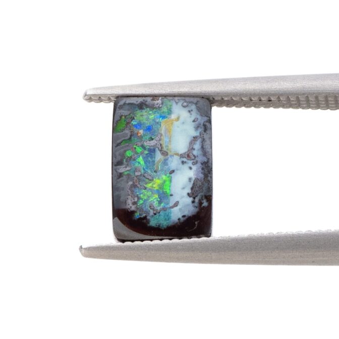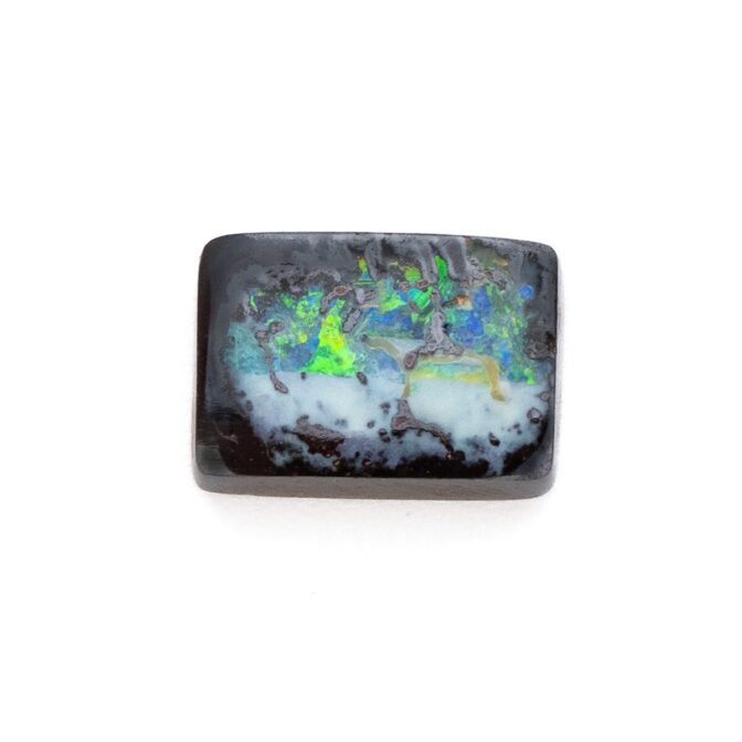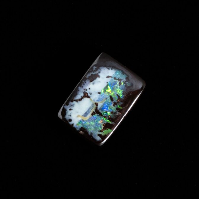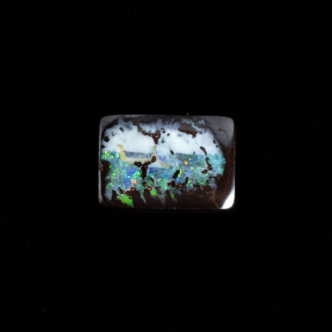 母岩の中にオパール層が入り込み、形成されるボルダーオパール。母岩の隙間からほとばしる遊色の輝きと、模様のように入り組んだ鉱物たちが織りなす美しさは、芸術品の域に達します。主にオーストラリアで産出しますが、残念ながら年々採掘量が減っており、価格が急騰している石の一つでもあります。