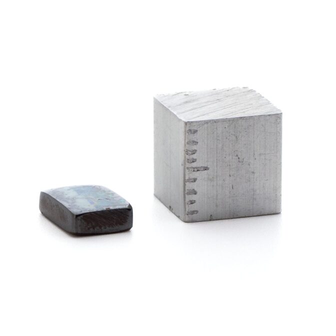 このページでご紹介しているボルダーオパールは、大変状態がよく、質も良いデッドストック。香港に買い付けに行った際、オーナーすら存在を忘れていたという逸話があります。引退するオパール専門店からまとめて引き取ったものの、数が多すぎてジュエリーにするにも手が届かず、持て余していたとのこと。なるほど、ジュエリー用だったからこその質の良さなのですね。上質なボルダーオパールは、カラット数を保つため、どうしても大粒になりがち。ですが今回のロットはやや小さめに形よくカットされ、ジュエリーにぴったりサイズなのが嬉しいところ。漆黒に艶めく母岩の間からチカチカと星のように瞬く遊色は鮮やかな紺色。鮮烈な輝きが黒い母岩から湧き出す様子はまるで夜空を走り抜ける雷鳴のよう。シックなのに華やかという相反する要素を持つ、2面性があるルースです。