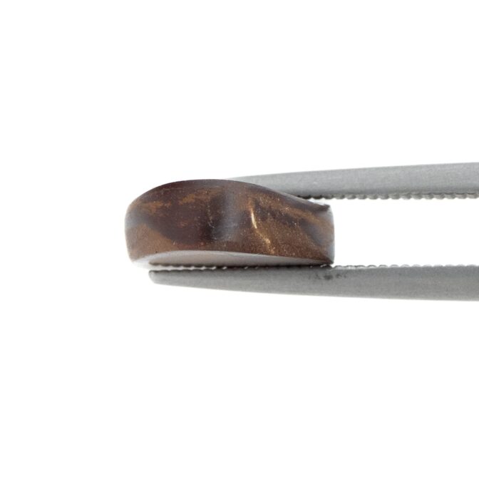 このページでご紹介しているボルダーオパールは、大変状態がよく、質も良いデッドストック。香港に買い付けに行った際、オーナーすら存在を忘れていたという逸話があります。引退するオパール専門店からまとめて引き取ったものの、数が多すぎてジュエリーにするにも手が届かず、持て余していたとのこと。なるほど、ジュエリー用だったからこその質の良さなのですね。上質なボルダーオパールは、カラット数を保つため、どうしても大粒になりがち。ですが今回のロットはやや小さめに形よくカットされ、ジュエリーにぴったりサイズなのが嬉しいところ。母岩とオパール層のコントラストが美しく、まるで蝶が羽ばたくような模様にも見えます。