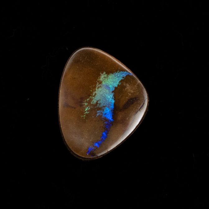 小さめとはいえど、鑑賞するには十分な大きさがあり、光が当たった時に溢れ出る遊色を楽しめます。深く、暗い地球の底から、きらめく閃光のように地表まで押し出されてきた美しいオパールを捕まえてルースに仕立てた一点もの。ペンダントヘッドに仕立ててればゆらゆらと揺れる大地の輝きを楽しんで頂けます。