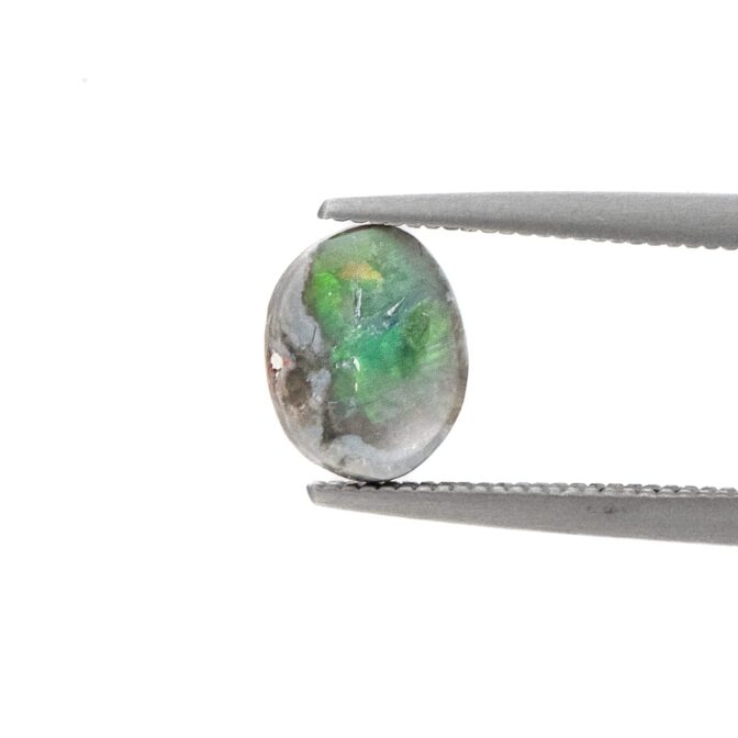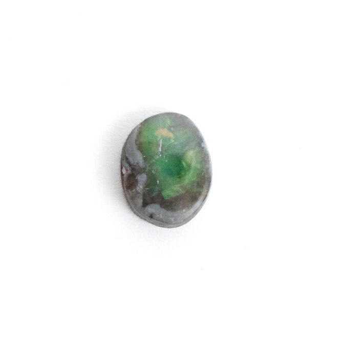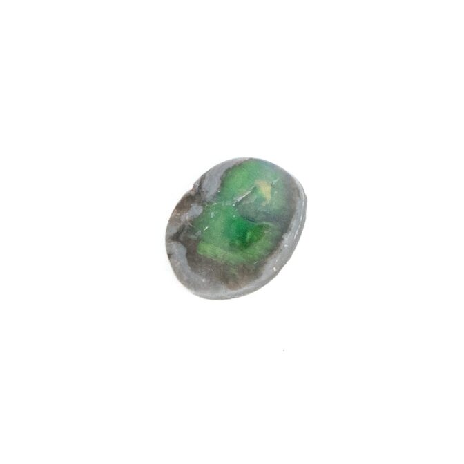 上質なボルダーオパールは、カラット数を保つため、どうしても大粒になりがち。ですが今回のロットはやや小さめに形よくカットされ、ジュエリーにぴったりサイズなのが嬉しいところ。母岩と明るい藍色、そしてレーザーのように直線的な光を放つグリーンの遊色を持つオパール層の対比が美しく、まるで海辺の景色のように見えるところも素敵です。