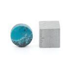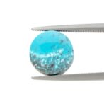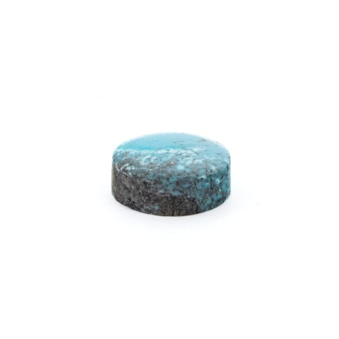 このページでご紹介しているのは、可愛らしいラウンドカボションのルース。澄んだ蒼い海を連想させるブルーに、さざなみのような模様が海辺の景色のよう。黒い岩礁にぶつかって白く弾ける波をそのまま絵にしたと言われても信じてしまいそうです。ターコイズといえば、どちらかと言うとワイルドでカッコ良いイメージが先行していましたが、こんな繊細かつ美しい模様を持つルースもあるのです。