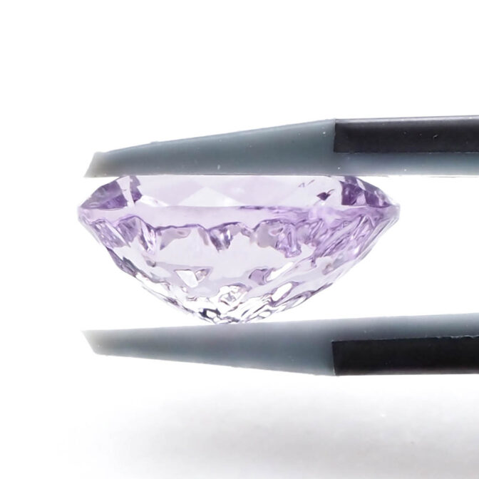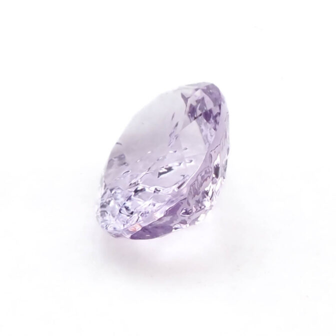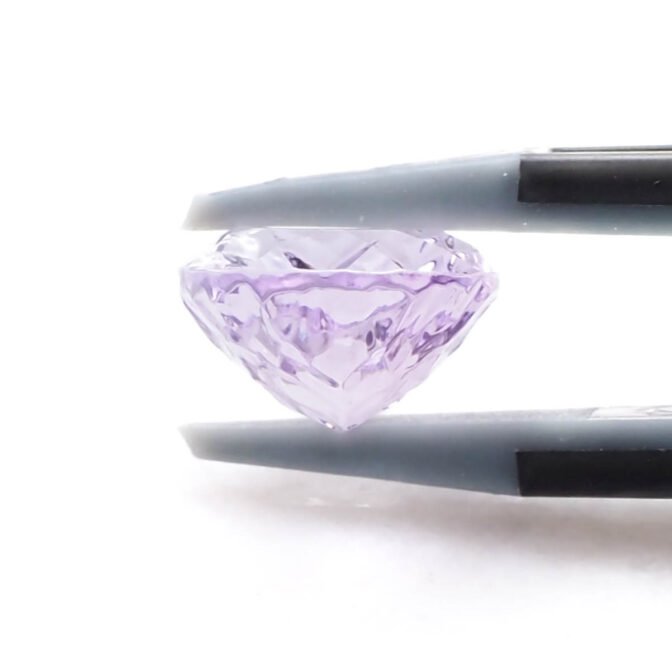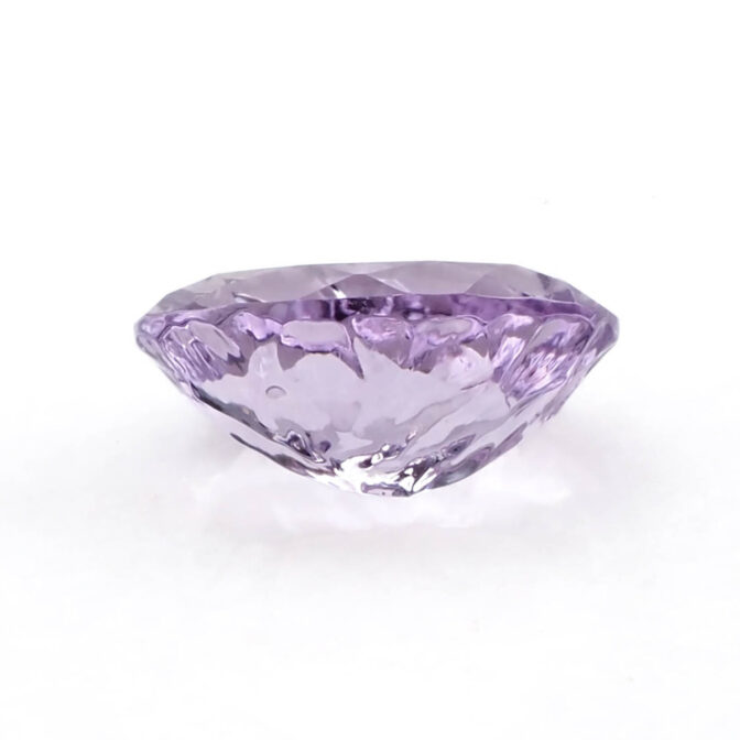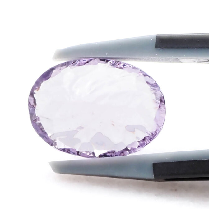 薄紫のノーブルな色合いが麗しいアメジスト。複雑なカットから生み出される輝きは想像以上の流麗さです。ひとめ見ただけでは普通のアメジストですが、光を受けて原石の岩肌のようにゴツゴツとしたきらめきを放ちます。その繊細かつ大胆なまばゆい光は、アメジストの意外性ある美しさを引き出し、新たな魅力に気づかせてくれます。クォーツ系で加工のしやすい石だからこそ施せる大胆なカットなのです。