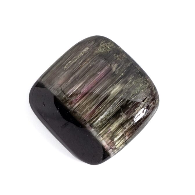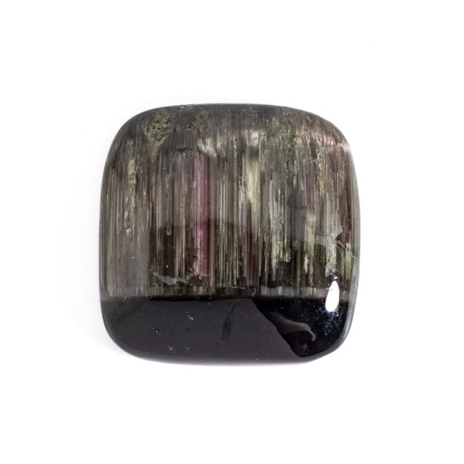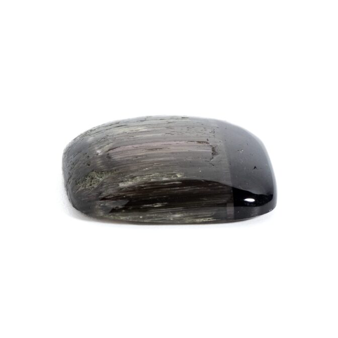 いかに言葉を尽くしても、このトルマリンの美しさは語り尽くせません。まるで、精巧に作られたかのように、一筋の銀色の光芒でピタリと止まるシャトヤンシー。一見色彩がないのに、光の角度によって突然現れる、いかにもトルマリンらしい複雑な色彩美。シャトヤンシーの上にもほんのりと色彩が踊り、全く新しいトルマリンの魅力を発見できる稀有なルースになっています。