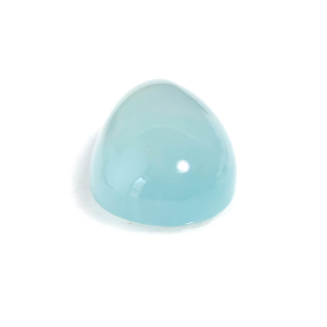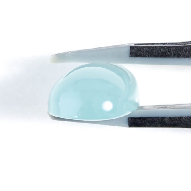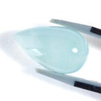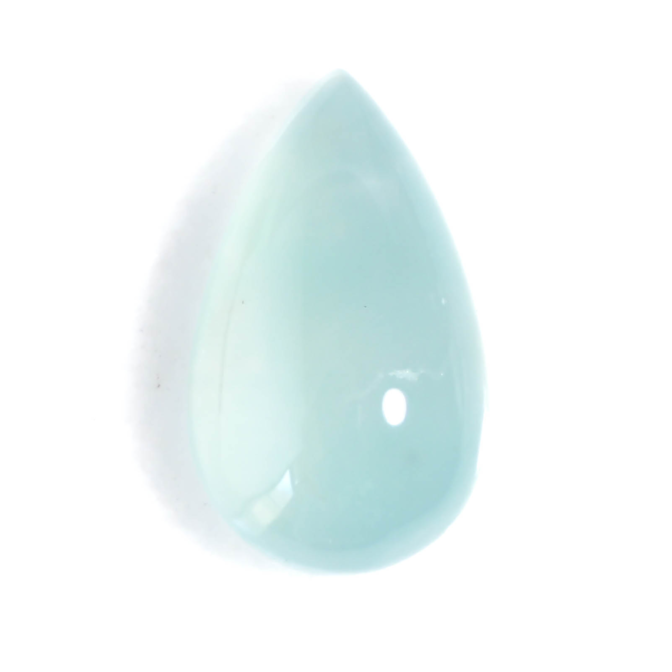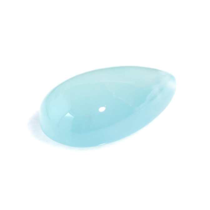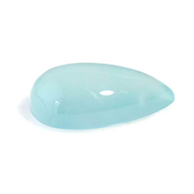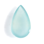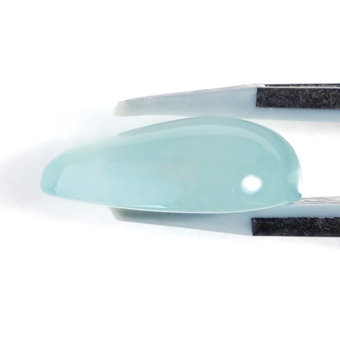 なだらかな曲線を描くティアドロップシェイプはややクールな雰囲気。全体に色が淡く、パステルブルーの甘やかな色合いが光に透けて美しく輝きます。色が均一で優しい雰囲気の石が好きな方におすすめです。