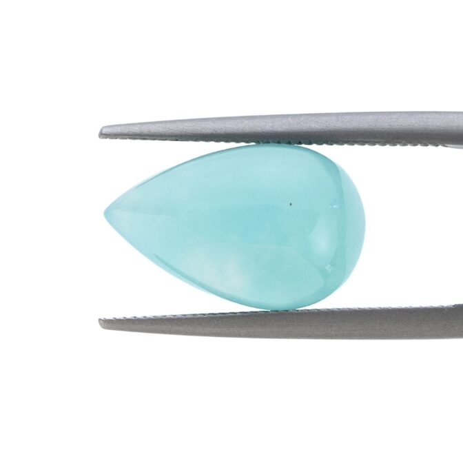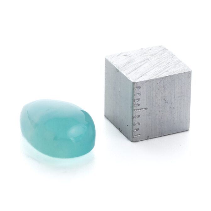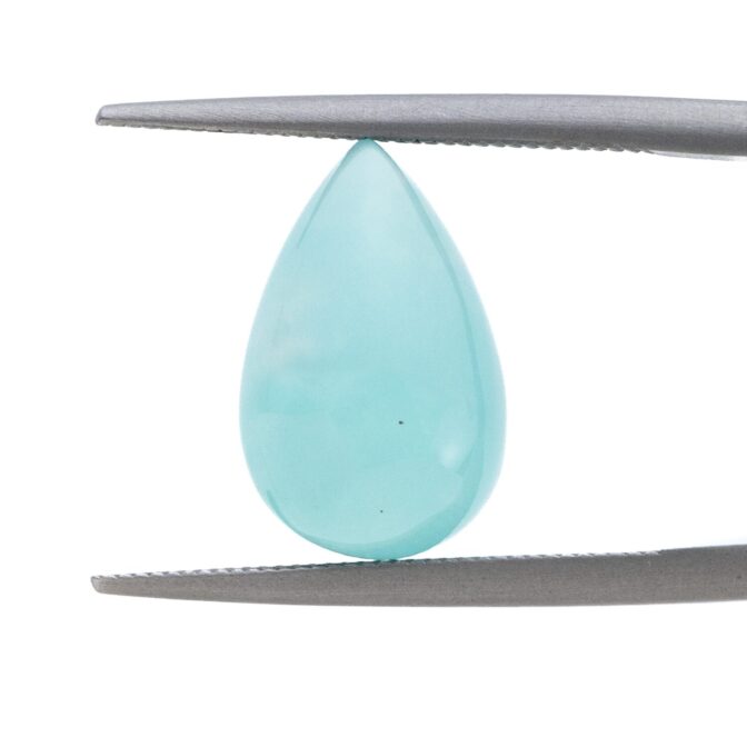 2000年代に新たに見つかった比較的新しい宝石、アクアプレーズ。カルセドニーの仲間で、名前がよく似ているクリソプレーズとは、実は兄弟のような間がら。クリソプレーズの発色にはニッケルが関わっており、鮮やかなアップルグリーンになります。アクアプレーズはクリソプレーズとは違って青みが強く、この色はクロムにより発色しています。