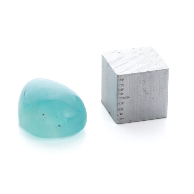 どちらも採掘量はとても少なく、大粒で美しいものは大変価値が高く、特にアクアプレーズの濃くて明るいブルーは石好きの羨望の的。光を透かしながら半透明に優しく輝くさまはカルセドニーの魅力に溢れています。このページでご紹介するアクアプレーズは見栄えが良い大粒を選りすぐって買い付けました。つやつやぷるぷるに磨かれており、アクアプレーズの魅力がしっかり詰まっています。