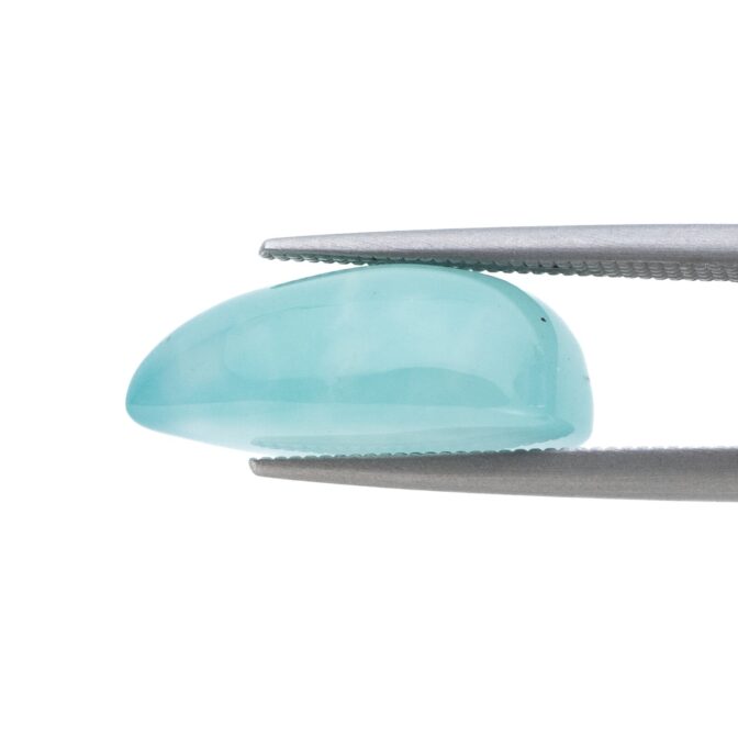 2000年代に新たに見つかった比較的新しい宝石、アクアプレーズ。カルセドニーの仲間で、名前がよく似ているクリソプレーズとは、実は兄弟のような間がら。クリソプレーズの発色にはニッケルが関わっており、鮮やかなアップルグリーンになります。アクアプレーズはクリソプレーズとは違って青みが強く、この色はクロムにより発色しています。