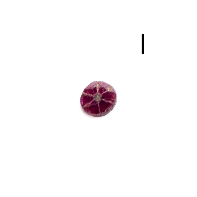 真紅の鮮やかな石の中に6条のラインがはっきりと浮かび上がるトラピッチェルビー。かの有名なルビーの産地、ミャンマーのモゴック産です。