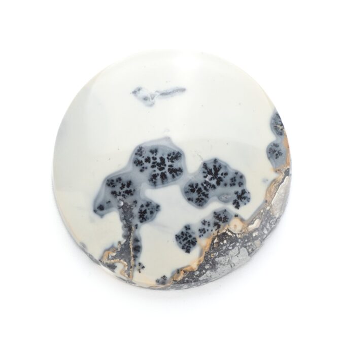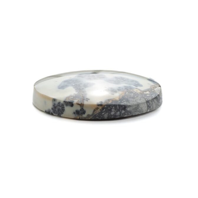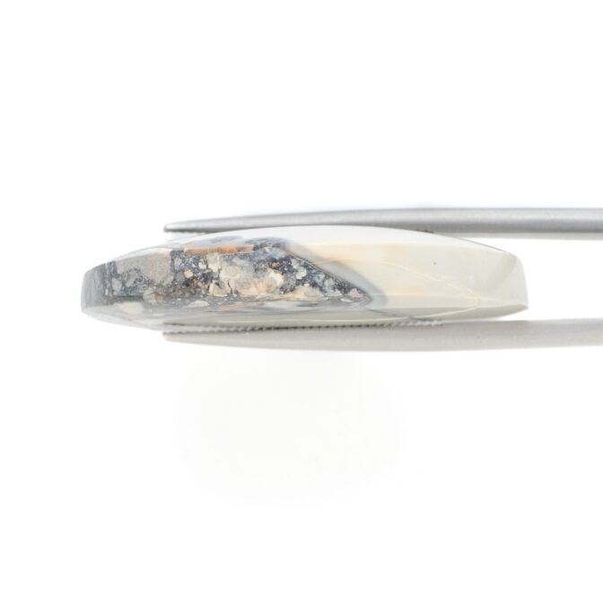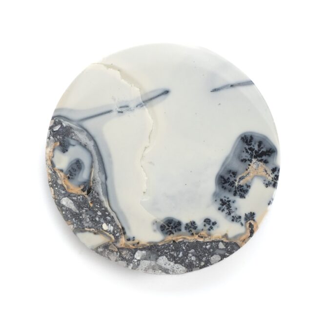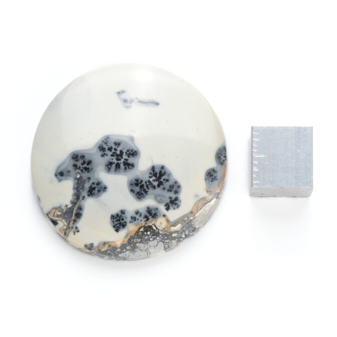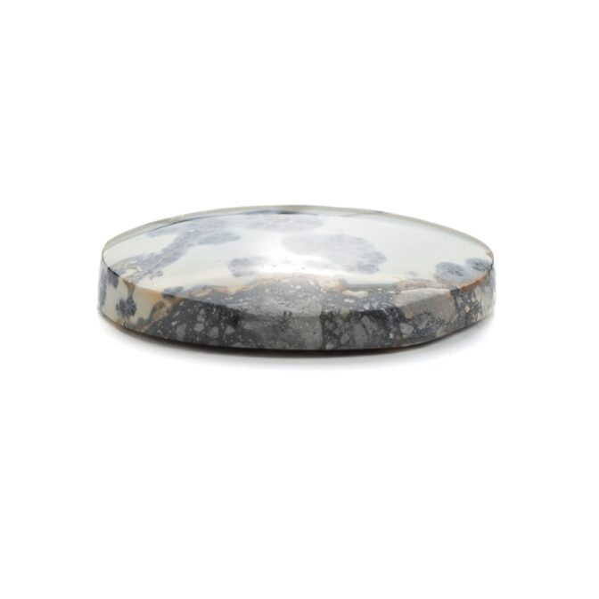 不透明かつ細かい石英がたくさん集まって生成されるジャスパー。その成り立ちゆえに、時に奇妙な模様が現れることがあります。インドネシアのマリガノ村付近で採掘され、モノトーンの色調がシックな魅力を持つマリガノジャスパーも例外ではありません。このページでご紹介しているマリガノジャスパーも、白とグレイを基調に、まるで水墨画のような風情のインクルージョンが不思議な模様を描き出しています。