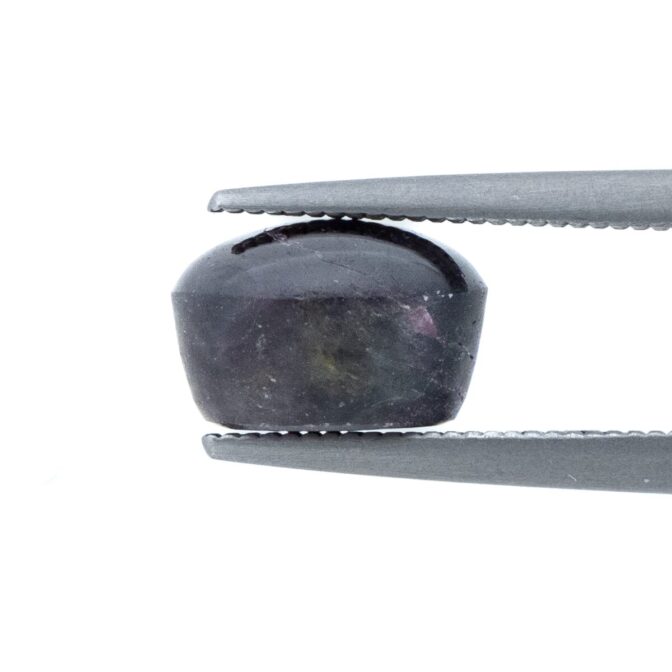 硬度が高く、しっかりとしたカボションカットのサファイアなので、もちろんジュエリーにもして頂けます。深い色合いは、金色の地金を使うとノーブルな雰囲気になりそうです。こういった表情の変化を楽しむルースは、手元で楽しむリングもおすすめですよ。