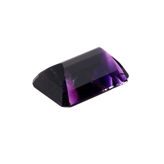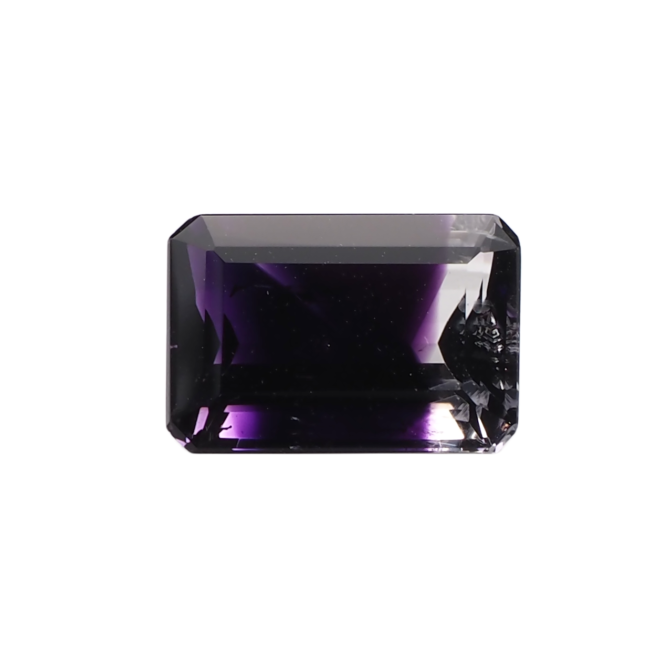 薄紫、濃紫、クリアカラーへと徐々に色を変えるバイカラーアメジスト。繊細な色のグラデーションは見るものを魅了する美しさ。インパクトのあるノーブルな紫が真ん中に入っているのがこのルースの強い個性的を演出していいます。天然石らしい奥行きと立体感を感じさせる色だまりとインクルージョンがほとんどないクリアな部分との対比が、大地が気まぐれに作ったこの世に二つと無いアートです。