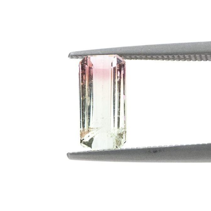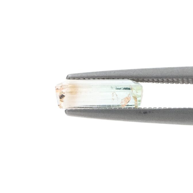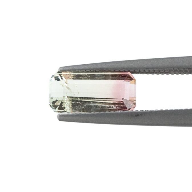 透明な輝きあふれるバイカラートルマリン。大粒でインクルージョンがあまりない透明な美しさは清々しく、柔らかなグラデーションが持つあたたかでまろやかな色合いは、見ているだけで忙しい日常をひと時忘れさせてくれます。細長いカットのルースは、色の移り変わりがしっかりと楽しめ、いつまでも眺めていたい誘惑に駆られます。多色性のある石なので、見る方向や角度によっても表情を変えるところが、たまらなく素敵なのです。