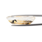 全く違う雰囲気の柄が一つの石の中で強いコントラストを描き、このルースの印象をより個性的に仕上げています。典型的なデンドリティッククォーツ模様だけを残して磨くこともできたはずなのに、わざわざ尖ったテイストに寄せているのところに魅了されてしまいます。既成概念に飽き足らない、挑戦的なデザインに研磨職人のセンスを感じます。