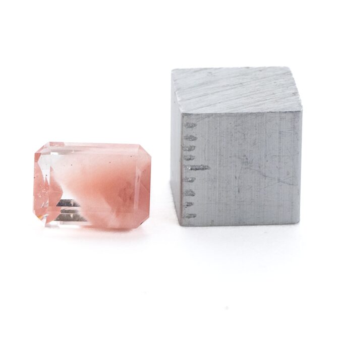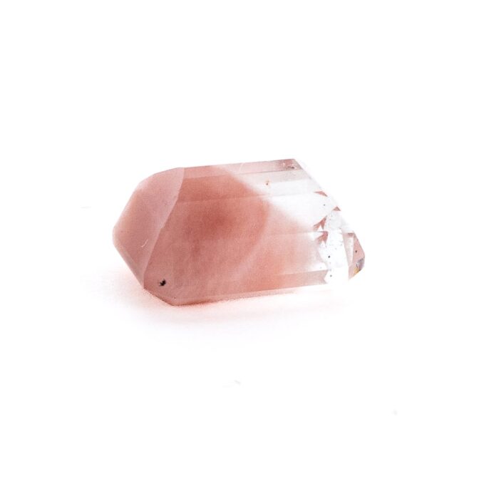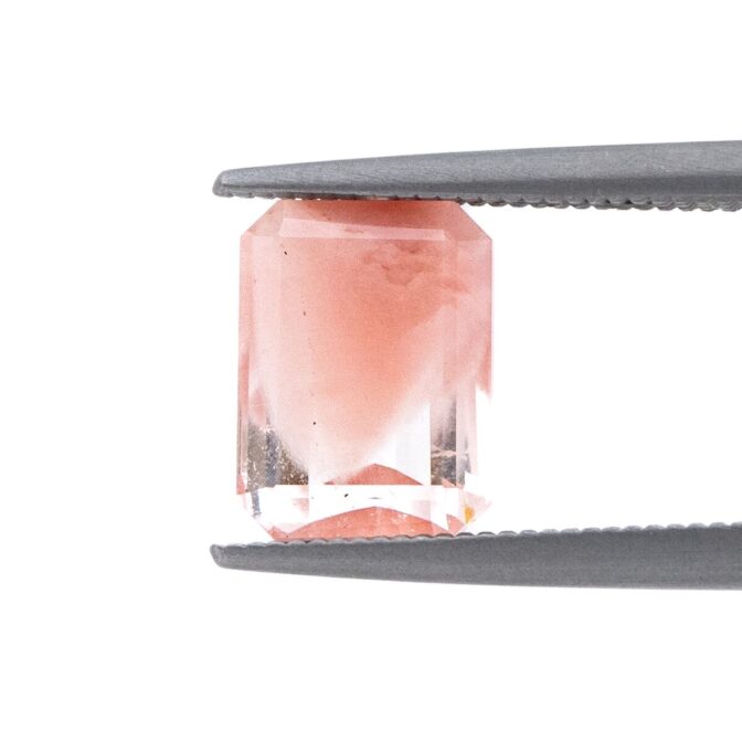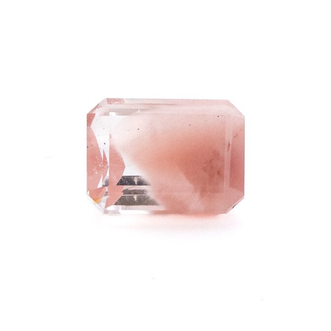 ところが、これがツーソンマジックでしょうか。端正なエメラルドカットを施され、桜ピンクのインクルージョンが、春を待ち侘びるこの季節にぴったりの風情。ブラジル産の澄み切ったクリアな水晶と、優しく肌馴染みの良い桜色の組み合わせが劇的に美しく、ジュエリーにしたらとても映えそう。落ち着いているのに華やかさがある色合いは、ピンクを身につけるのは少し気恥ずかしい大人世代にもお勧めです。