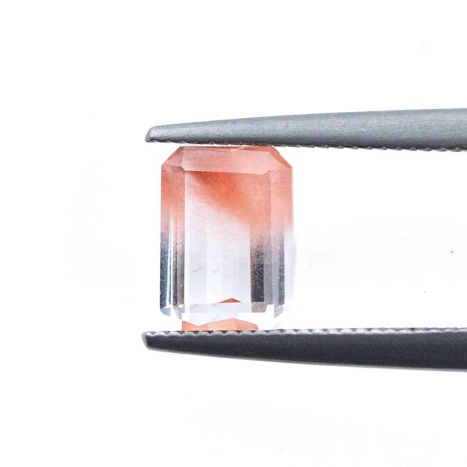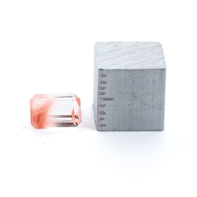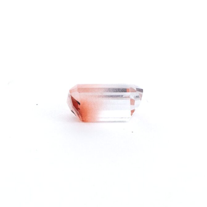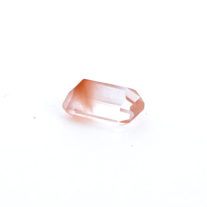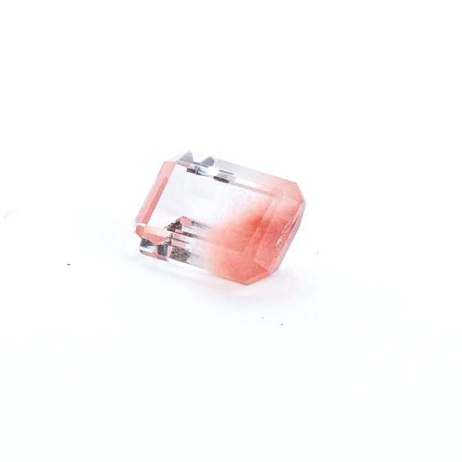 ところが、これがツーソンマジックでしょうか。端正なエメラルドカットを施され、桜ピンクのインクルージョンが、春を待ち侘びるこの季節にぴったりの風情。ブラジル産の澄み切ったクリアな水晶と、優しく肌馴染みの良い桜色の組み合わせが劇的に美しく、ジュエリーにしたらとても映えそう。落ち着いているのに華やかさがある色合いは、ピンクを身につけるのは少し気恥ずかしい大人世代にもお勧めです。