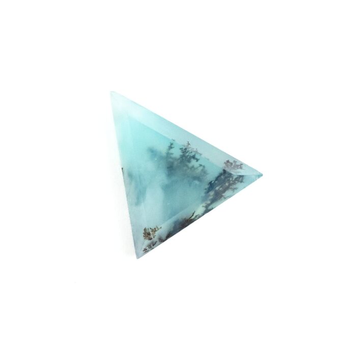 【鮮やかなブルーに輝くオパールに、植物のようにも見えるデンドリが入った希少なルース】