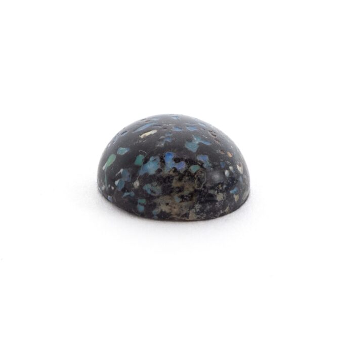 一見モノトーンのシックな色合いですが、光にかざすとところどころに散りばめられた遊色が燦然ときらめき、華やかに輝き出します。その色とりどりの美しさは地上の宝石に例えられる夜景のようにも見えます。ブルーからグリーンの落ち着いた色合いはクールな印象ですが、ひっそりとオレンジの色彩が散りばめられています。どちらかというと穏やかな光で、ギラギラが苦手な方におすすめです。