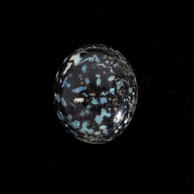 【漆黒の母岩と、レオパード柄にも見える白いオパールのきらめきが圧倒的な迫力美。】