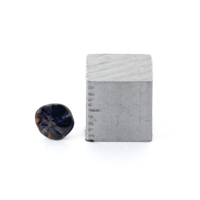 濃く艶やかなブルーの中に、放射状にトラピッチェの軌跡が白く輝く様は、神々しさすら感じます。光を受けてギラリとあやしく輝く6条の線条痕は、銀色、時には虹色にきらめき、一度見たら忘れられないほど印象的。この色と輝きを手にいれるために、何年も世界中を旅した甲斐がありました。