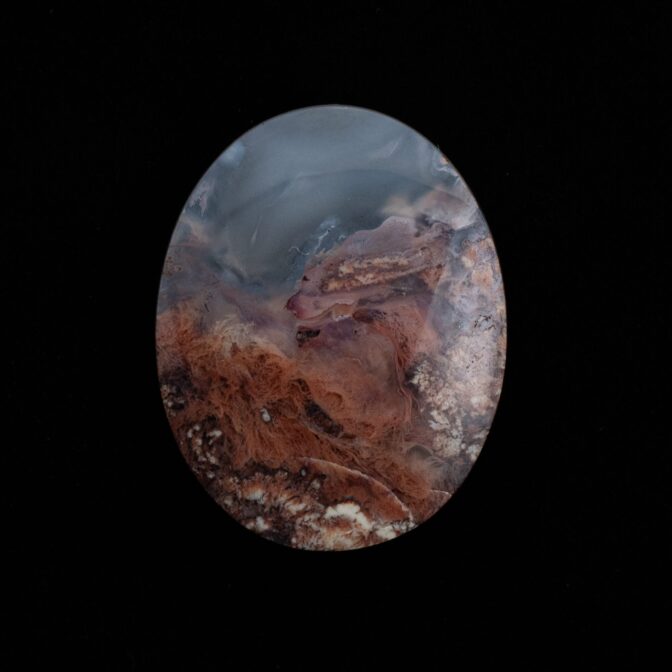 宝石研磨とは、一つの石とじっくりと向き合うこと。その中で様々なインクルージョンや色を抱え込み、懐深い美の結晶であるアゲートやクォーツを好きになるのは、ごく自然なことなのかもしれません。半透明の優しい輝きに色鮮やかなインクルージョンが咲き乱れ、アゲートの世界をより深く広げてくれるランドスケープアゲートは、文字通り景色にも見える華やかな美しさで私たちを魅了してくれます。