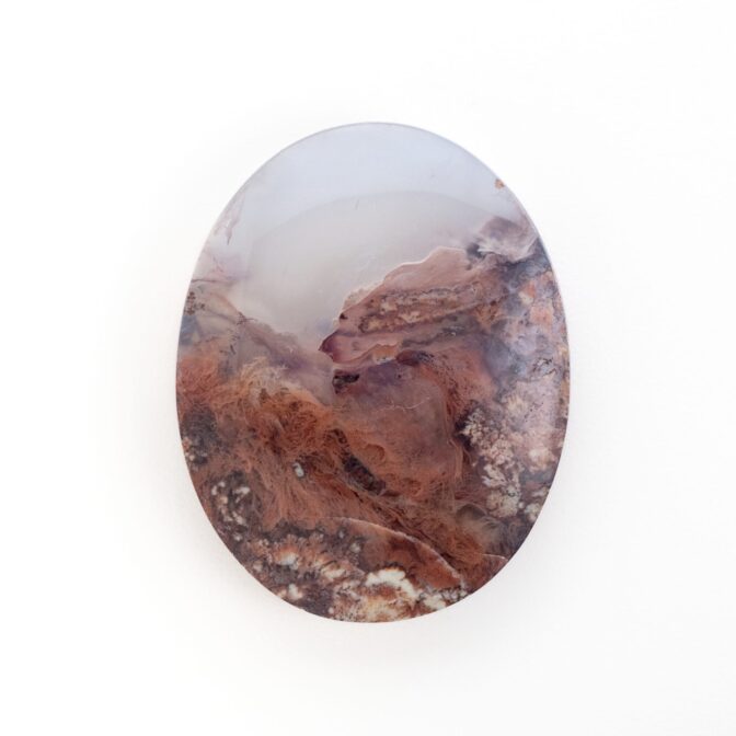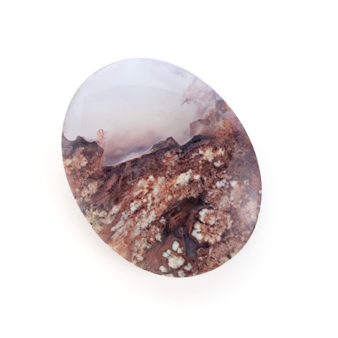ランドスケープアゲートとは、鉱物の名前ではありません。様々なインクルージョンを持ち、景色のように見えるアゲートを総称するニックネームのようなもの。インクルージョンの種類を鑑別し、「インクルージョン名+インアゲート」とするのも良いのですが、中には鑑別不可能なものや、複数の鉱物がが複雑に存在している事もあります。そこで、まるむ商会では一部のインクルージョンアゲートを「ランドスケープアゲート」と一括して総称。大地が作り出した地球の景色を閉じ込めたアゲートにぴったりな名前だと思っています。
