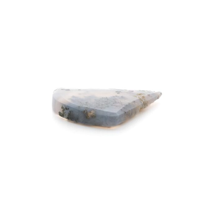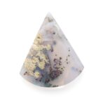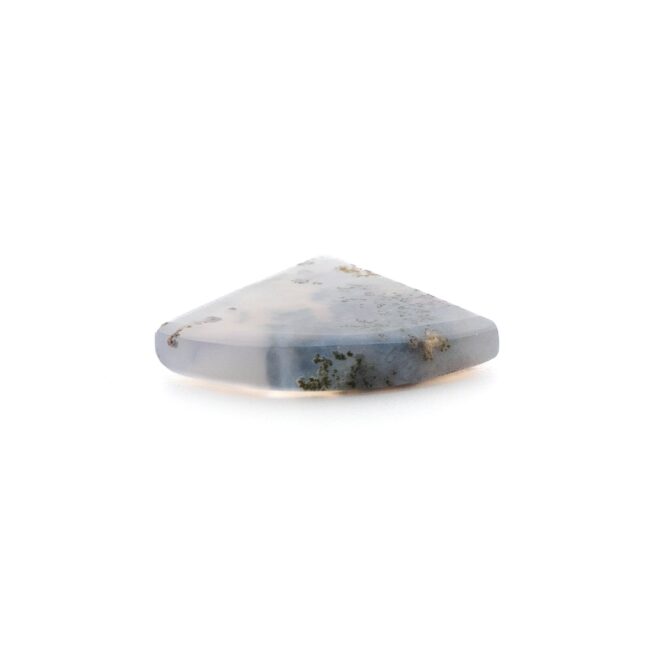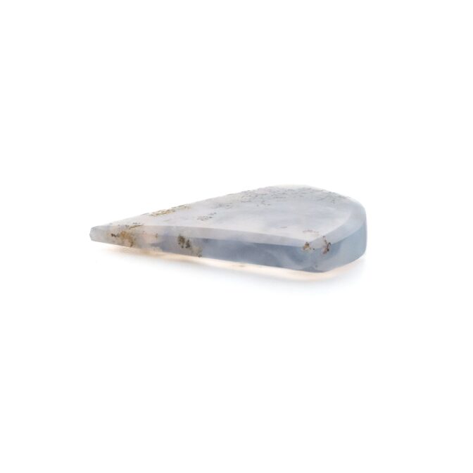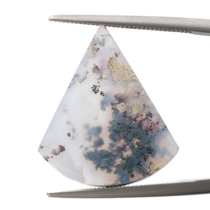 直線と曲線で構成された、三角形のような可愛いカットのランドスケープアゲート。これは、揺れるペンダントトップにしたら可愛いだろうなぁ、と思いついてしまったら、欲しくてたまらなくなってしまいました。透け感が麗しいので、合わせるお洋服によってさまざまに変化するのがまた良いのです。厚みがなく、軽やかなのも身につけやすいジュエリーの条件。肩肘はらず、さらりと長めにチェーンで着けこなしたら本当に素敵!