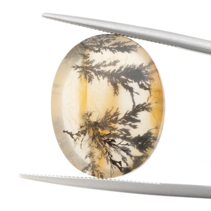 デンドリティッククォーツのようにインクルージョンが多い石は、傷やクラックも多く、あまり質の良さを感じさせない磨き上がりになります。ところが、このページでご紹介しているデンドリティッククォーツは、つやつやと潤んだような質感が美しいルース。全体的に可愛らしい雰囲気ながらも上質感を漂わせているのは、丁寧なカットと研磨を施されているからなのです。