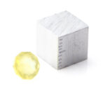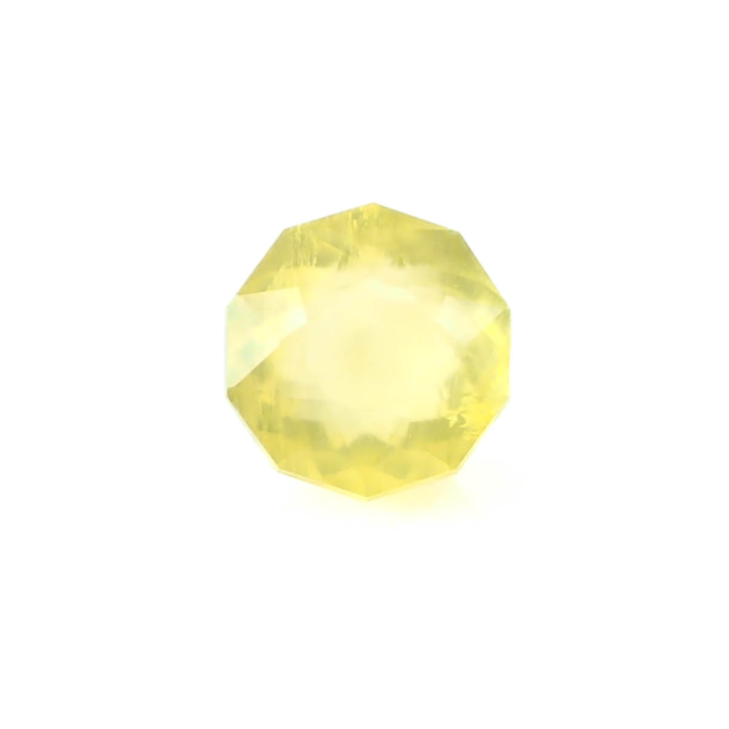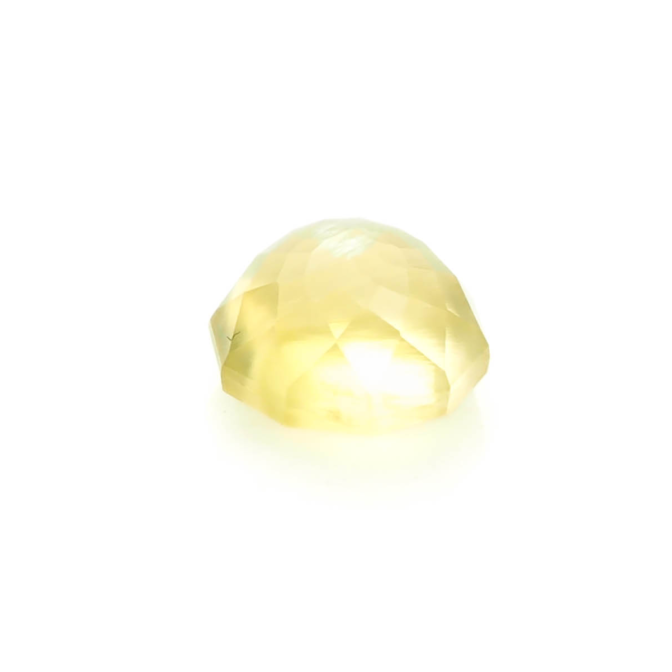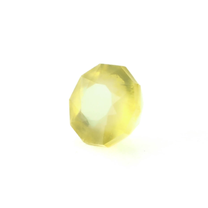 出会った瞬間から半透明のみずみずしい質感と、独特のネオン感がある色合いに目を奪われてしまったイエロープレーナイト。しかも、シャープなファセットに仕立てられており、その美しさには全面降伏でした。プレーナイトは教科書的に、丸みのあるカボションにカットされるのが正しいとされており、ファセットには向かないとされています。でも、半透明のミステリアスな輝きを宿す石が、シャープにきらめく様はなんとも言えぬ魅力があり、生来の天邪鬼が顔を出してしまうのを止められませんでした。