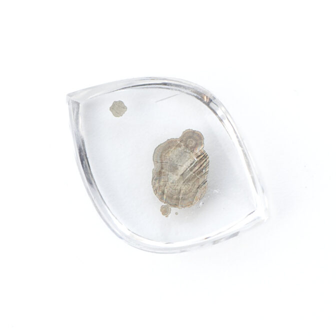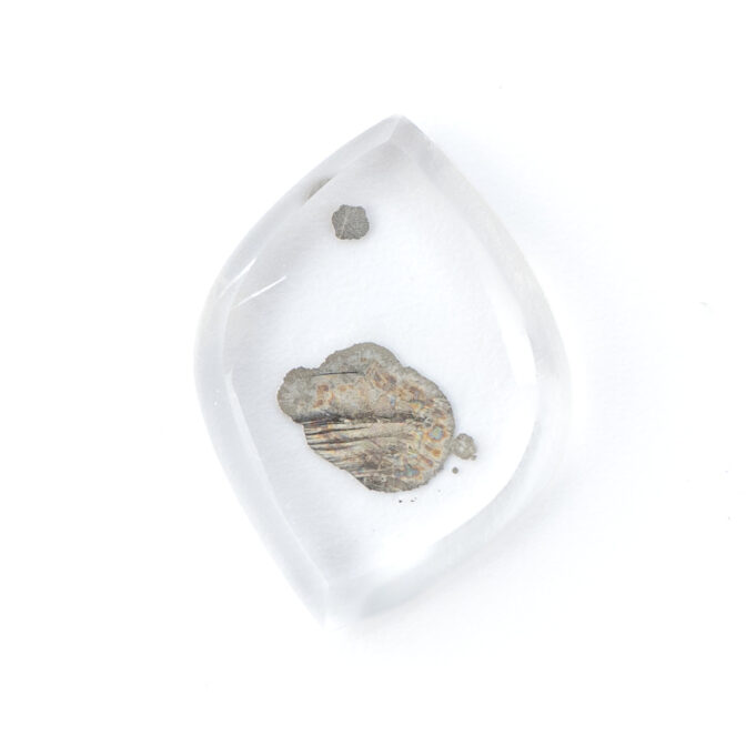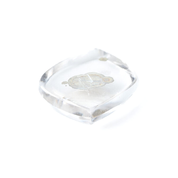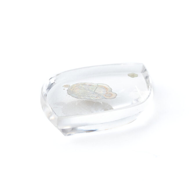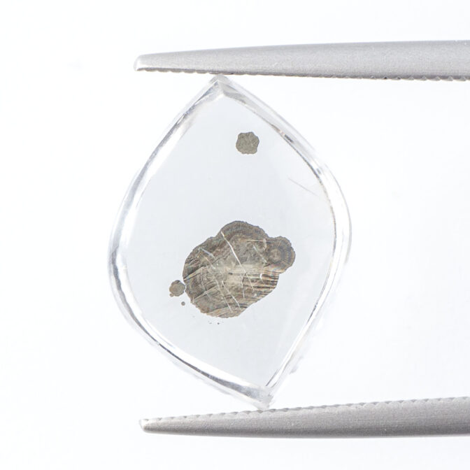 インクルージョンが入っているクォーツは結晶の純度が落ちるので、美しく磨くのは一般的にはとても難しいとされています。このパイライトインクォーツは大変質の良いクォーツに包まれているため、研磨もきちんと丁寧にできています。パイライトの結晶をクリアに見せるため、表面のカットはほとんどありません。すっぱりと潔くフラットに磨かれており、パイライトの結晶がはっきりと観察できるのも魅力。デザイン性に優れながらも石好きのココロを捉えてしまう罪なルースなのです。