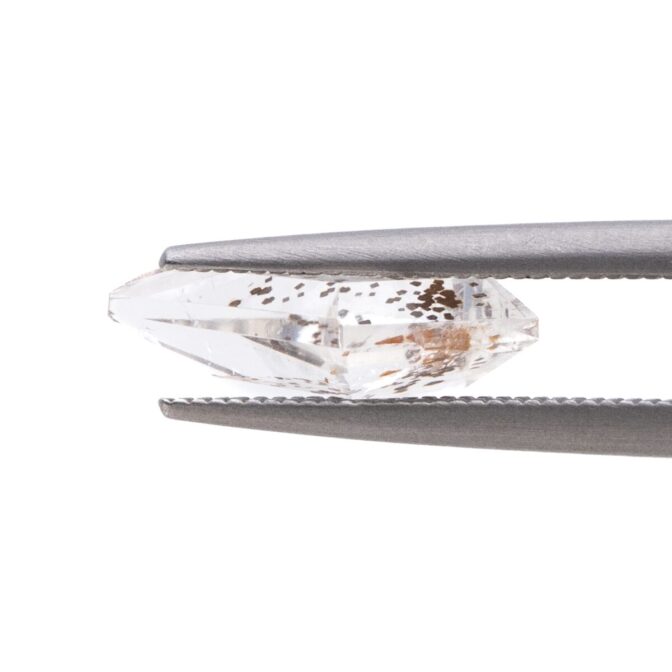 クォーツの上質な透明さの中に、すっきりと輝くパイライトを含んだルースは、ジュエリーに加工するのにぴったり。大きすぎず小さすぎずの程よい良いサイズ感で、ジュエリーに加工すれば透明な輝きに溢れる美しさを味わえます。シンプルな色とデザインなので、どんなスタイルにも合わせやすく、日常生活の寄り添ってくれるジュエリーになりそうです。