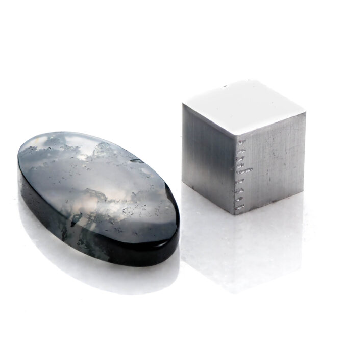 モスアゲートとは、アゲートの中にまるで苔のように見えるインクルージョン(内包物)が入っているもの。鉱物名ではなく、ニックネームのようなものなので、正式名称ではありません。が、他のアゲートとはあまりに見た目が違うので、区別するにはとても便利です。よって、まるむ商会ではモスアゲートと表記することにしています。