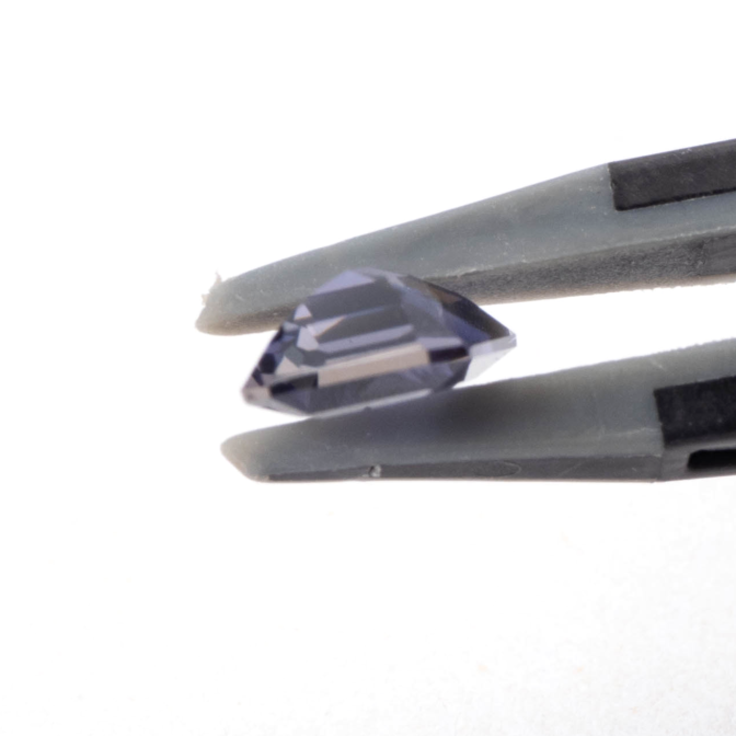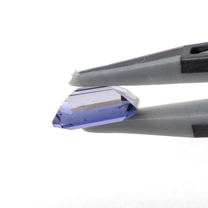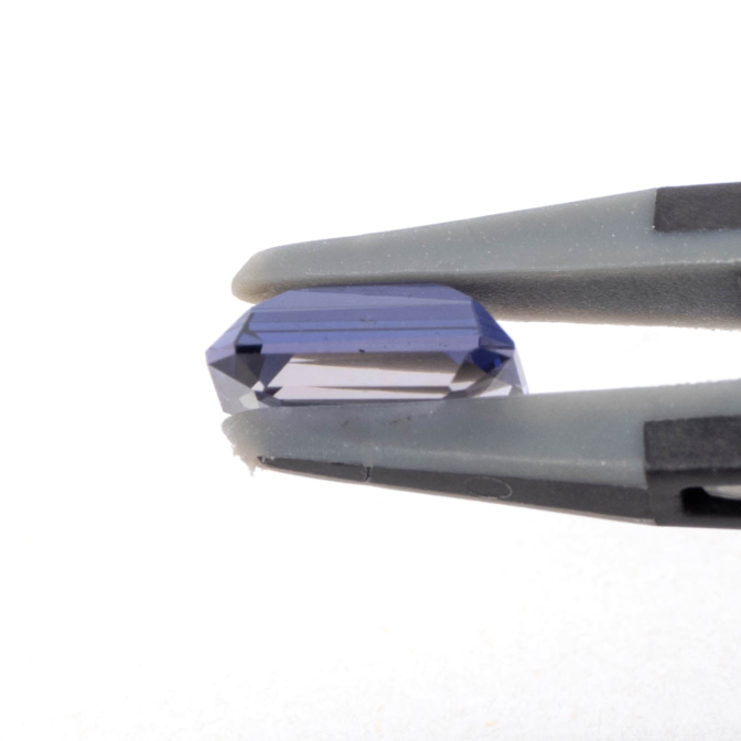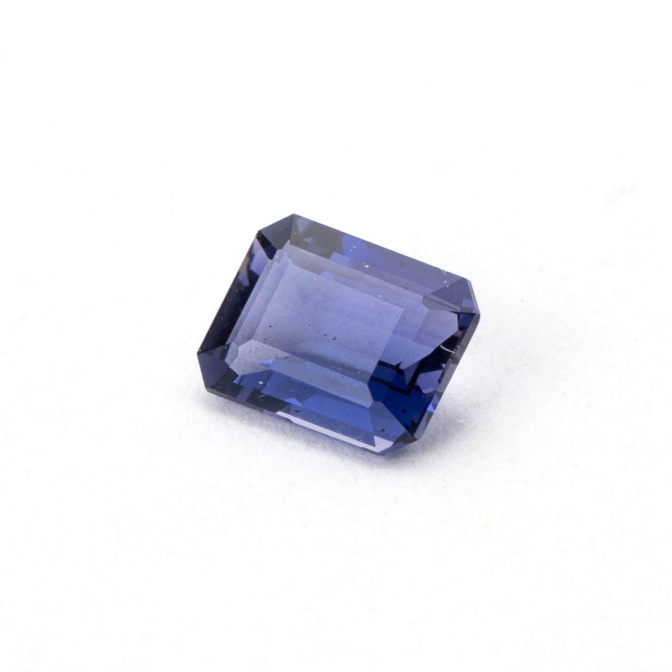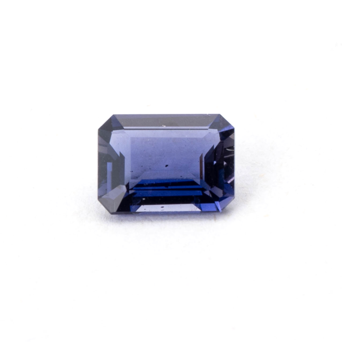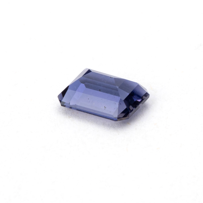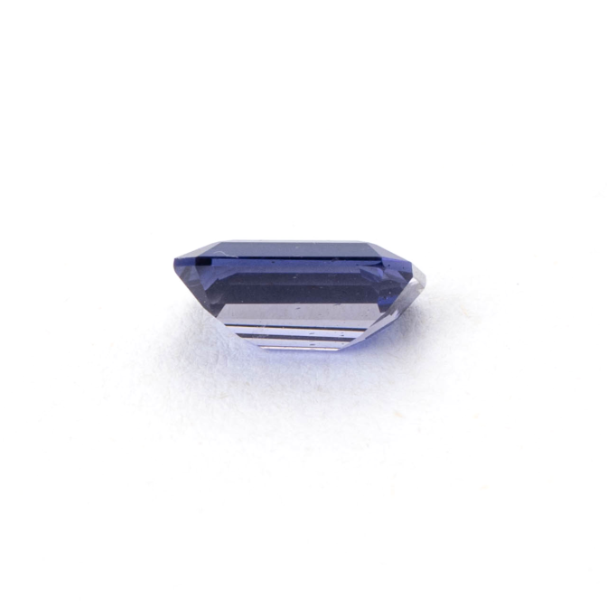 透明度が高く、バイオレットブルーが麗しいアイオライト。しっかりとした発色ですが黒みが無いため、澄んだ明るい極上の色彩を持っています。通常オーバルカットにされることが多いのですが、端正なエメラルドカットに仕立てられており、この石が持つノーブルな雰囲気を引き立たせています。