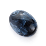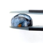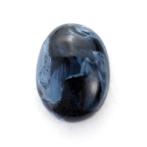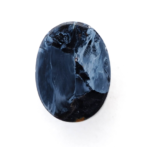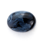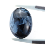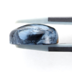 ブルーピーターサイトの輝きと模様を最大限活かすため、ふっくらとしたオーバルカボションに研磨されています。なだらかな曲面を滑るように移動する輝きを楽しむにはぴったりの形です。どちらかというとコレクター向けのルースですが、大粒リングに仕立てて輝きと味わいを楽しむことも可能です。銀色の地金を使用するときゅっと引き締まった大人のクールさが楽しめそう。