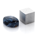 そもそもピーターサイトって何?という方もいらっしゃるかもしれません。1960年台に発見された比較的新しい石のことです。といっても、全く未知の新種鉱物、というわけではありません。比較的認知度が高いタイガーアイとホークスアイが地殻変動によって砕けた後、石英によって再び固まったものと考えられています。ターガーアイやホークスアイは光を反射する結晶が層状に折り重なることでキャッツアイが出現しますが、ピーターサイトはその結晶が渦巻くようになっているのが特徴。そのため、非常に複雑な模様を描き、ギラリと平面的に輝くシャトヤンシー効果がとても神秘的に見えるのです。ピーターサイトの中でも特に珍しいネイビーブルーを持つ石は、ブルーピーターサイトと呼ばれます。いまだに流通量が少なく、大変珍しい石で、近年知名度が上がりつつある注目度の高い鉱物です。