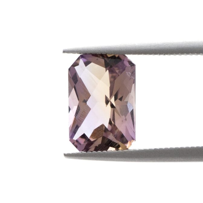 【パープルとイエロー、色の饗宴。珍しい変形チェスカットのアメトリン】