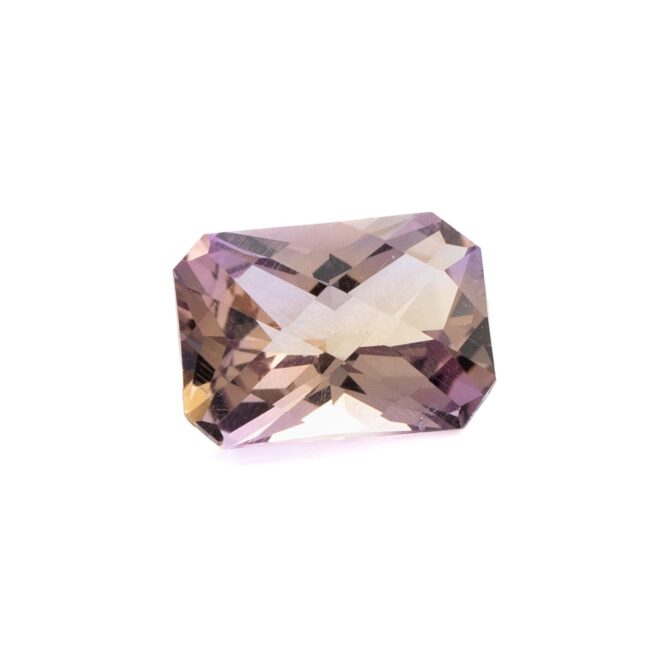 これは私の偏見かもしれませんが、クォーツ系の石って、とてもきっちりとした四角形(エメラルドカットと呼ばれます。)に磨かれていることが多い気がします。特にアメトリンは縦と横、比率の違いはあれど、同じようなエメラルドカットで仕上げられてるものがほとんど。それはそれで美しく上品だし、色もきちんと見えて良いのだけれど、もうすでに持っている方には物足りないのではないのかしら?と思ってしまいます。