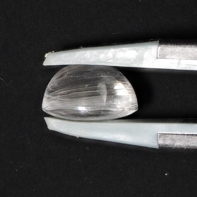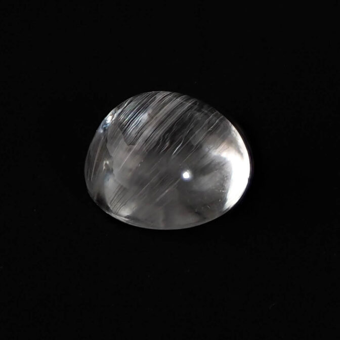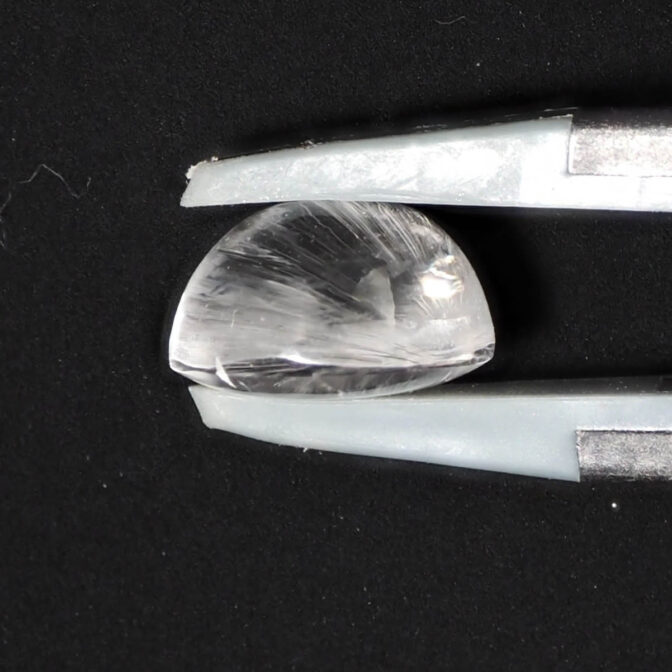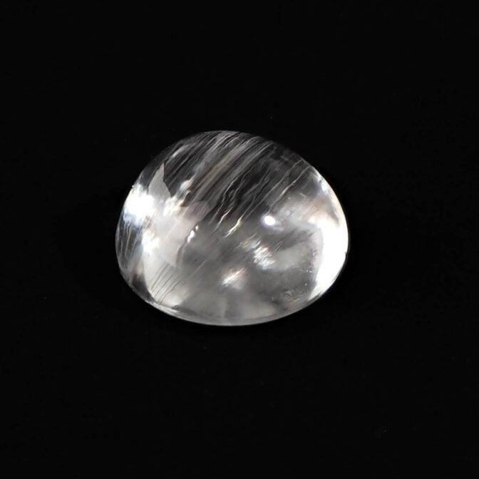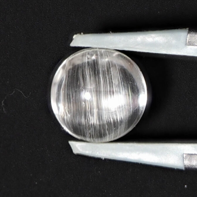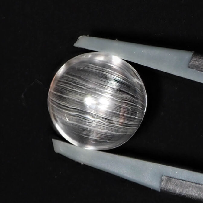 【白銀に輝く針状インクルージョンでキャッツアイがきらめくトパーズ】