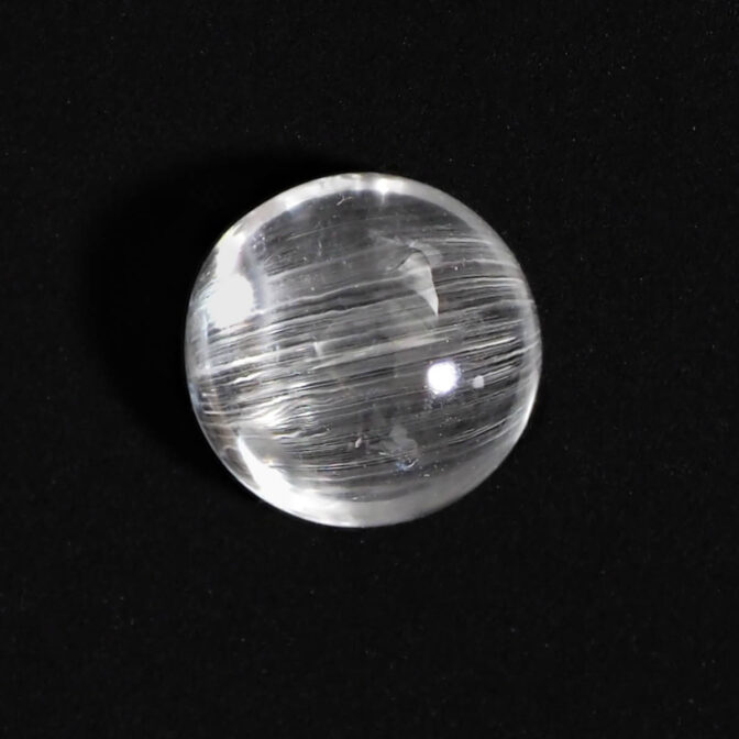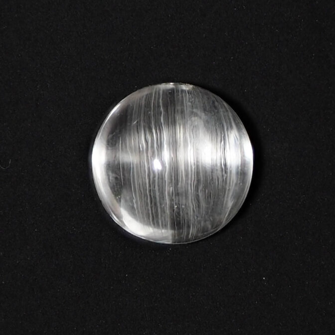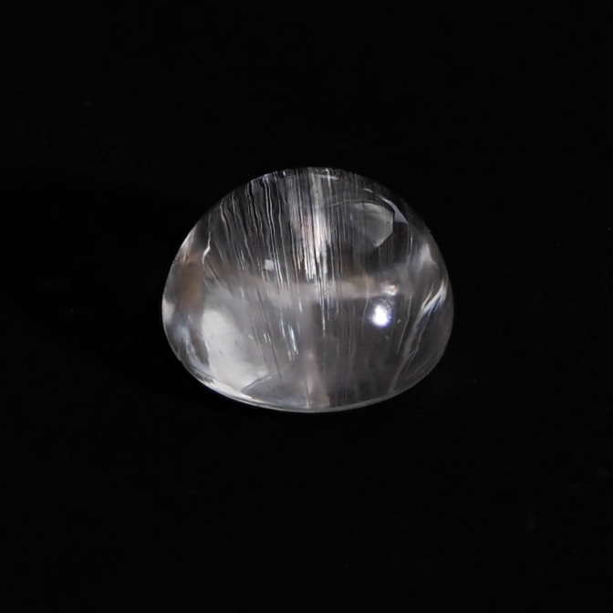 透明な水滴のようにぷるんとみずみずしいホワイトトパーズの中に、白銀の輝く糸が連なり、キャッツアイの効果をもたらしている美しいトパーズのキャッツアイ。まるでスポットライトのように石の中央を細く輝く光が照らし、一度見たら忘れられないきらめきを放ちます。透明度が高い部分と、繊細に白く輝く針がまっすぐに集まる部分のコントラストが美しく、華やかな光を放ちます。