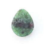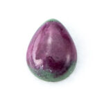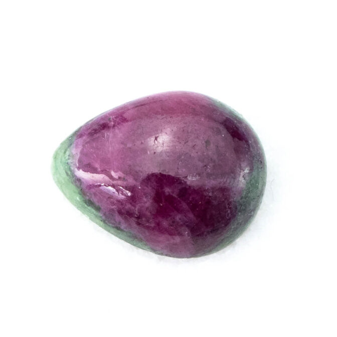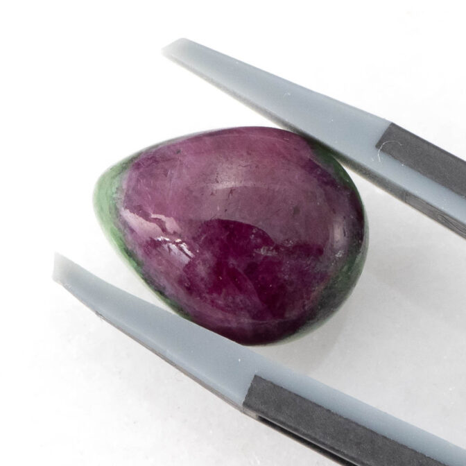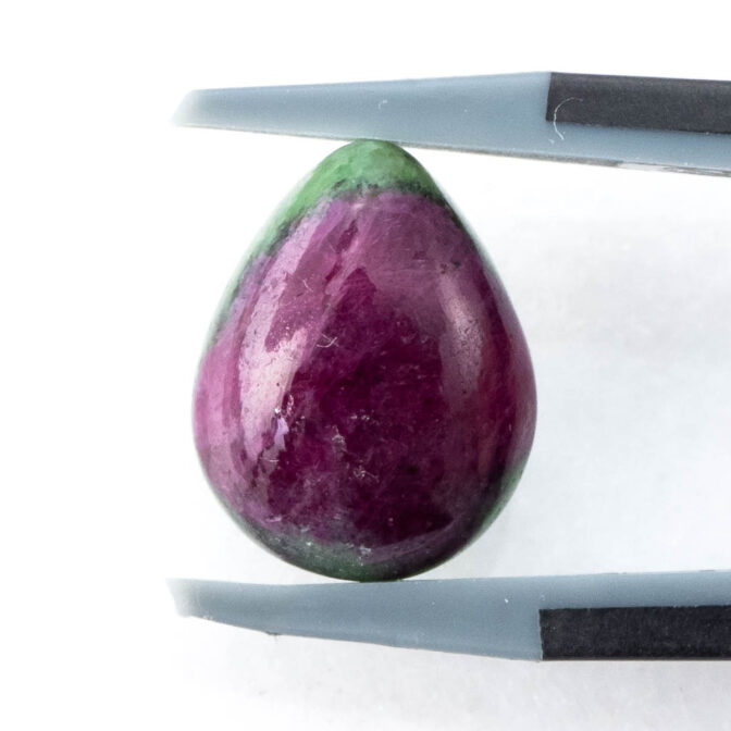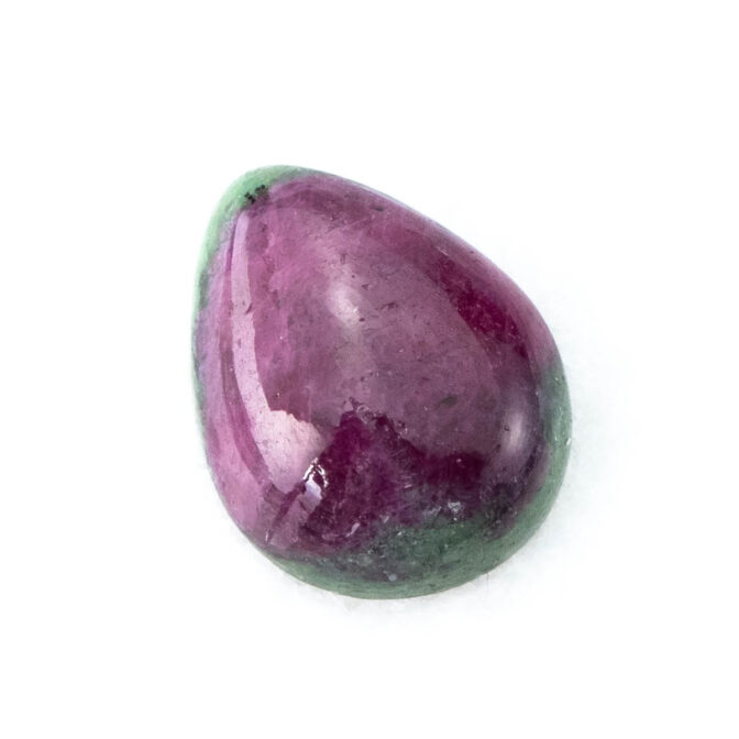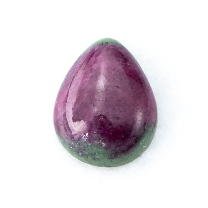 真っ赤なルビーの端に、ちらりとグリーンのゾイサイトが覗く、色のコントラストが可愛らしいルビーインゾイサイト。コロンとしたティアドロップシェイプで、ルビーの部分が品質よく、透明感を感じさせる鮮やかな発色なのも嬉しいポイント。硬度が高いコランダムらしいつやつやの輝きが上質感を感じさせ、甘いテイストでありながら、大人が持つに相応しい品の良さを持っています。
