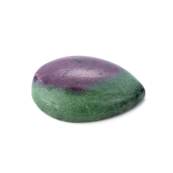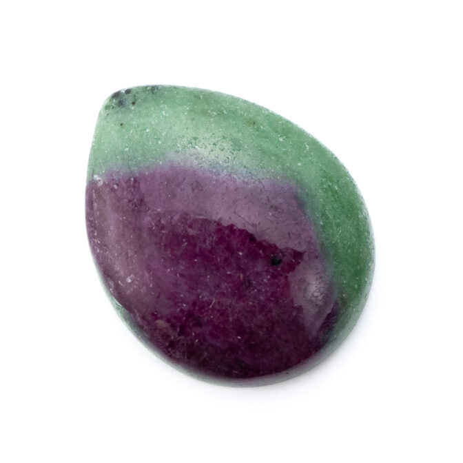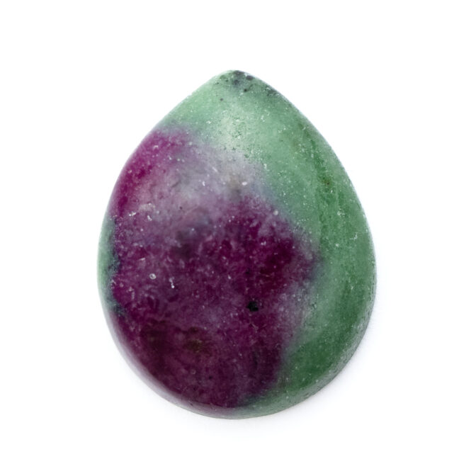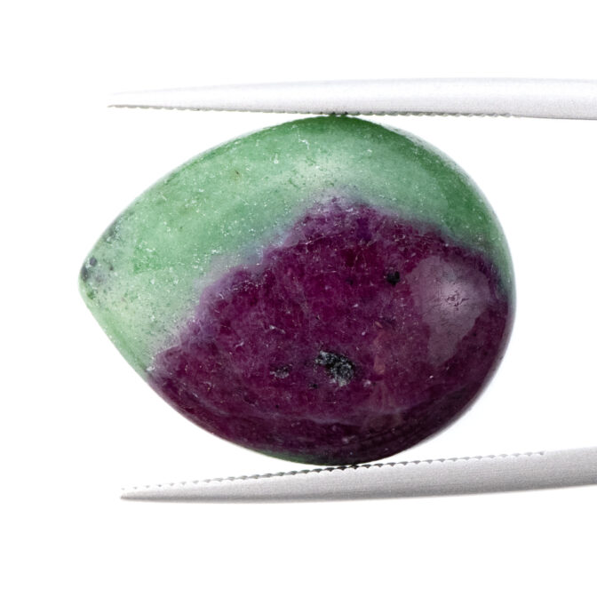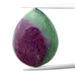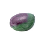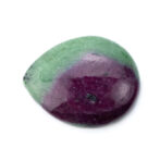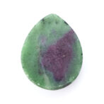 このページでご紹介しているルビーインゾイサイトは、丁寧にしっかりと研磨されており、整った形とつややかな曲線がさらに魅力的を倍増させています。こっくりと濃いルビーレッドと爽やかなグリーンの組み合わせが大変美しく、色のバランスもしっかり計算された石取りが光ります。ふっくらとした雫の形が微笑ましく、暖かな雰囲気です。