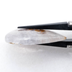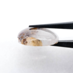 インクルージョンが多い原石をカットしていますので、こちらのルースにもインクルージョンや原石由来のクラックや欠けがあります。ルースの大きさも美しさの一つの要素と捉え、目立つ位置ではありませんので、あえてリカットはしておりません。先端と下端の部分ですので、ご承知おきの上、お買い求めくださいませ。ジュエリーにお仕立ての際は、石どめにご注意くださいね。