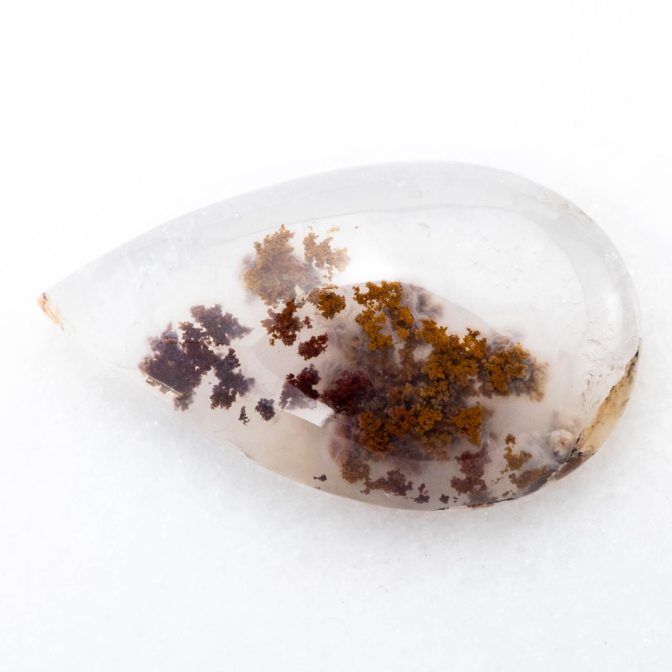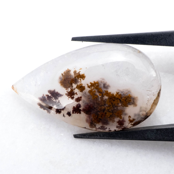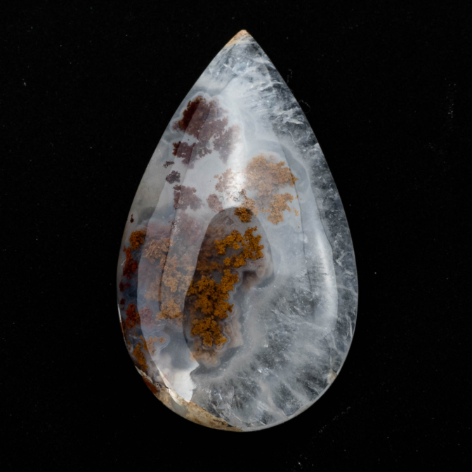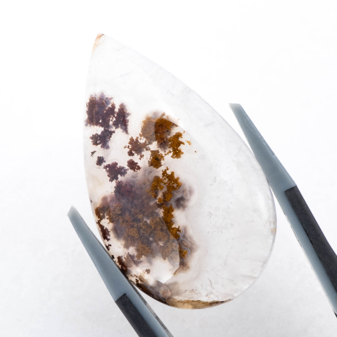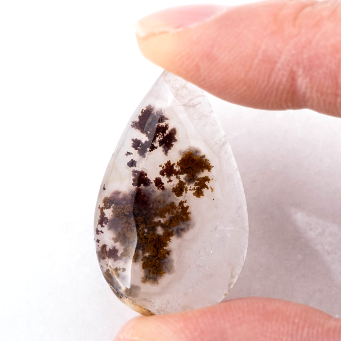 このページでご紹介しているランドスケープアゲートは、たっぷりと大粒で、植物を閉じ込めたまま氷りついた雫をそのまま石にしたかのよう。その楚々とした雰囲気は時にとても可愛らしく見えたり、はっとするほどクールに見えたり、見るたびに表情を変える不思議な美しさを持ちます。