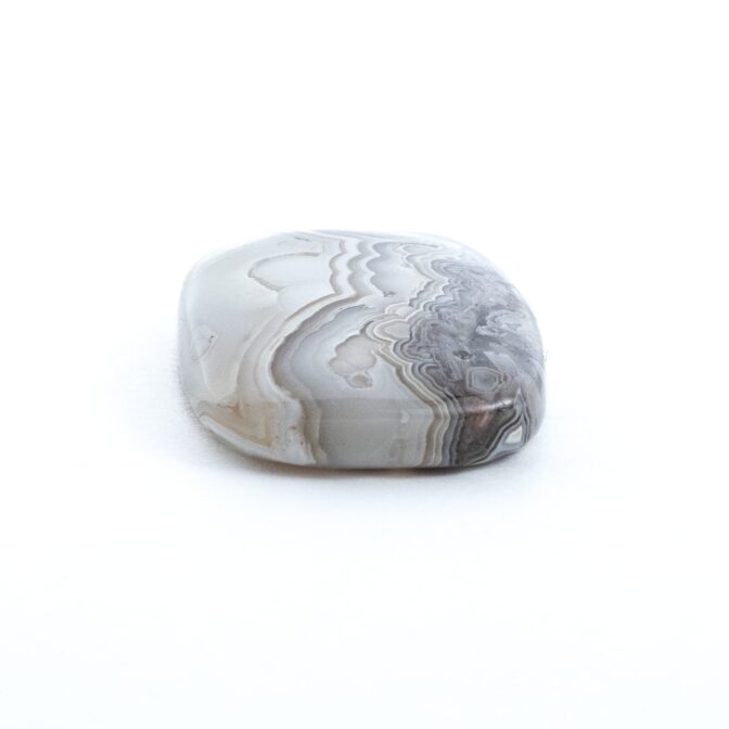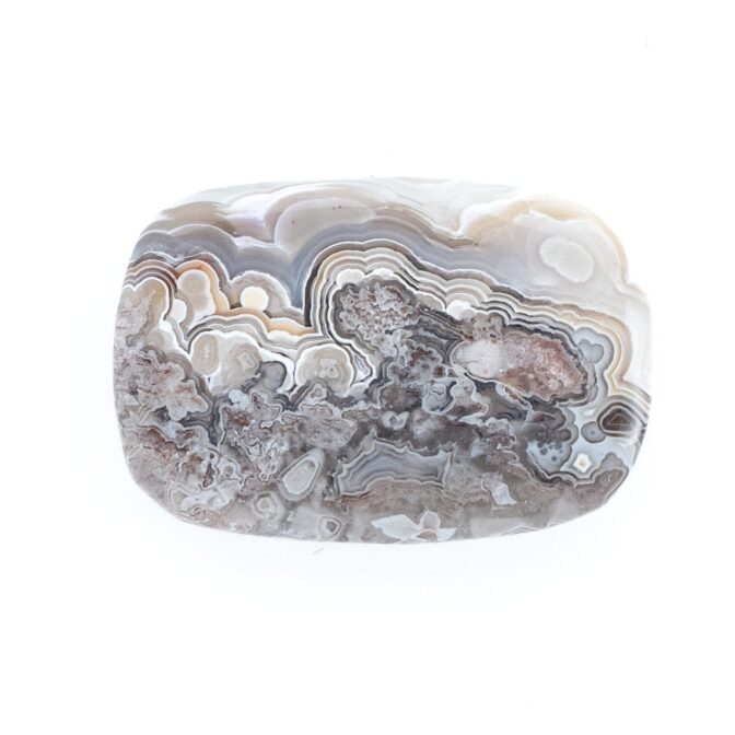 たくさんあるアゲートの仲間の中でも特に人気が高い石で、その模様の美しさは一度見たら忘れられないインパクト。折り重なる様々な地層を、小さな大地のカケラにギュッと閉じ込めたようなスケール感があります。クレイジーと名がつくほど気ままな曲線はまさに大地のいたずら。それでいてどこか温かみのある色合いなのは、地球が作り上げた芸術品だからでしょうか?