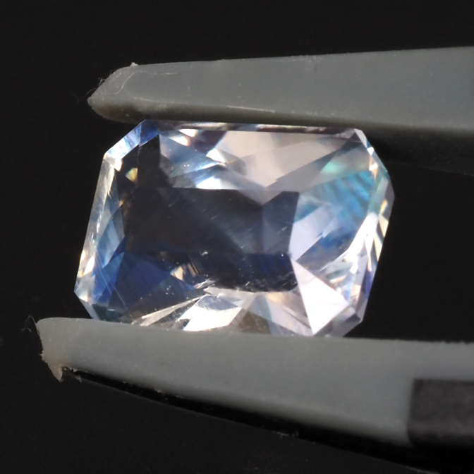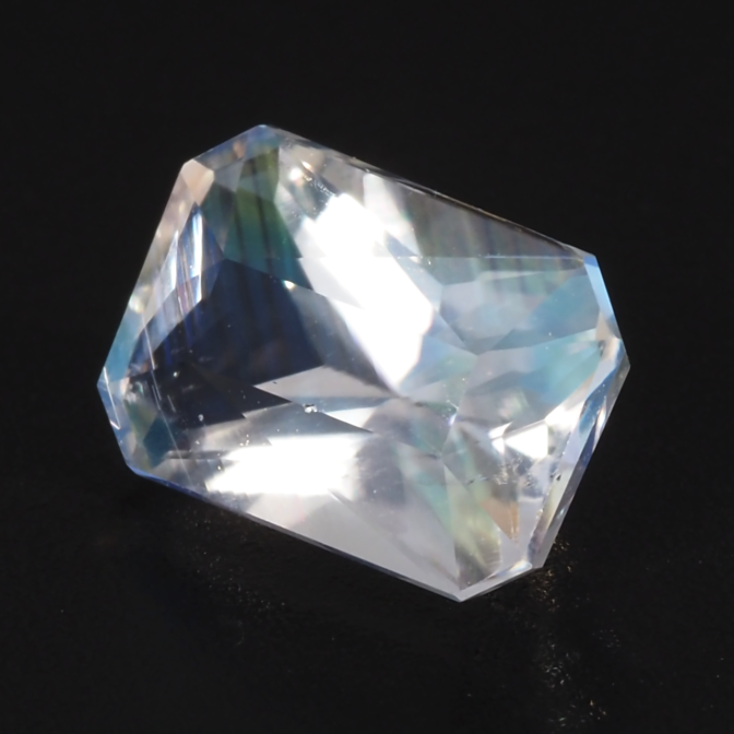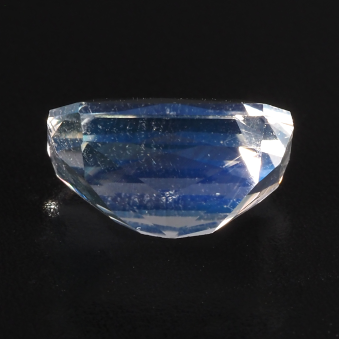 テーブル面全面全てに神秘的な紫を帯びたブルーのシラーがふわりと浮き上がります。ファセットの輝きの干渉を受け、時に強く、時に柔らかく閃くように石の表面をゆらめきます。複雑な美しい輝きに幻惑されてしまいそうです。